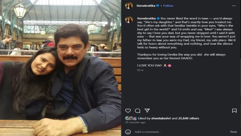 Posted onOctober 30, 2025inBollywood, Celebrities Special, Celebrity Interview “You Were My Dad, My Friend, My Safe Place”, Pankaj Dheer’s Daughter-in-Law, Kritika Sengar, Pens Heartfelt Tribute