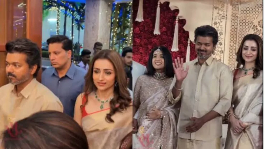 South Indian superstar Vijay has once again grabbed headlines after appearing at a high-profile wedding reception alongside actress Trisha Krishnan. The appearance comes just days after reports surfaced that Vijay’s wife Sangeeta Sornalingam filed a divorce petition in Chennai, intensifying speculation around the actor’s personal life. Photos and videos from the event are now circulating widely on social media, drawing strong reactions from fans.