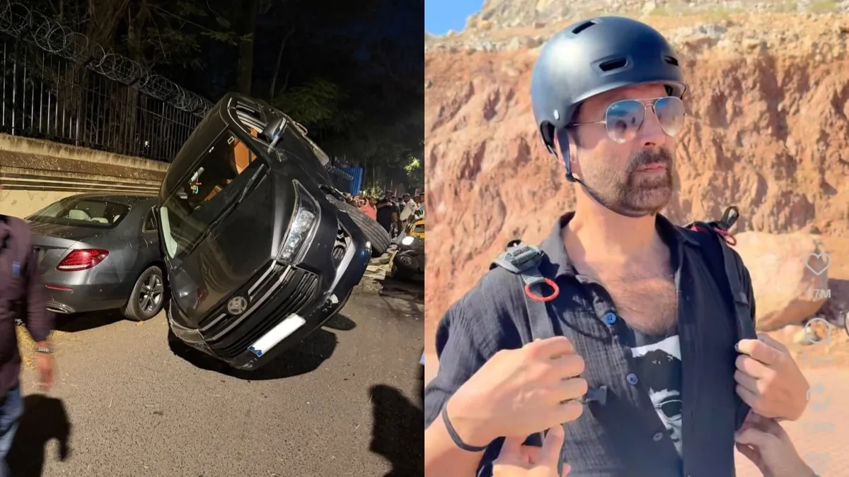Bollywood superstar Akshay Kumar was involved in a shocking road accident on Monday evening while returning home from a shoot. The incident took place near Silver Beach Cafe in Juhu, when the actor was travelling from the airport to his residence. Though the accident appeared severe, no lives were lost, and the actor is reported to be completely safe. According to initial reports, a speeding Mercedes car rammed into an auto-rickshaw, which then lost control and crashed into Akshay Kumar’s security van.