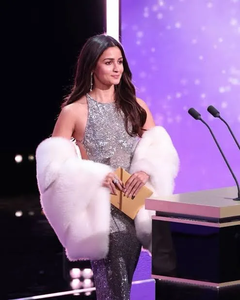 When she finally stepped onto the stage, the excitement in the room was palpable. Introduced warmly by host Alan Cumming, Alia made a graceful entrance that immediately drew attention. Dressed in classic Hollywood glamour, she not only impressed with her style but also with her powerful presence as she took on the role of presenter for the Best Film Not in the English Language category.