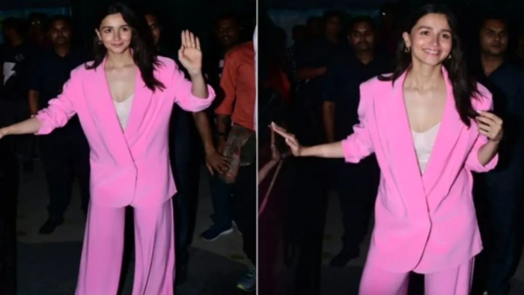 The new mom in town wore a baby pink pantsuit styled with a light-colored bralette top. She wore gold hoop earrings. Alia applied minimal makeup. Her hair was untied. She gave her million-dollar smile. The actress posed for the camera. She waved to the paparazzi while leaving the shoot venue.