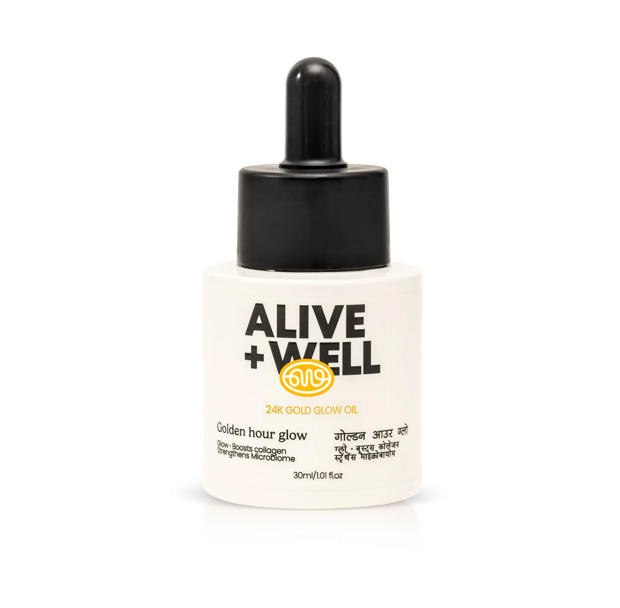Available at: https://www.aliveandwellshop.com/products/alive-well-24k-golden-hour-glow-facial-oil-30ml