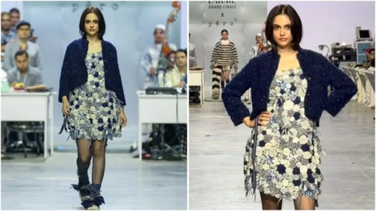 Dressed in a blue-and-white ensemble that reflected Pero’s signature aesthetic, she walked the ramp in a look featuring a cropped jacket layered over a textured appliqué dress. The outfit leaned toward a youthful, playful vibe rather than high-glam drama—staying true to the label’s design philosophy. However, despite the creative styling, the overall presentation didn’t land well with a section of the audience.