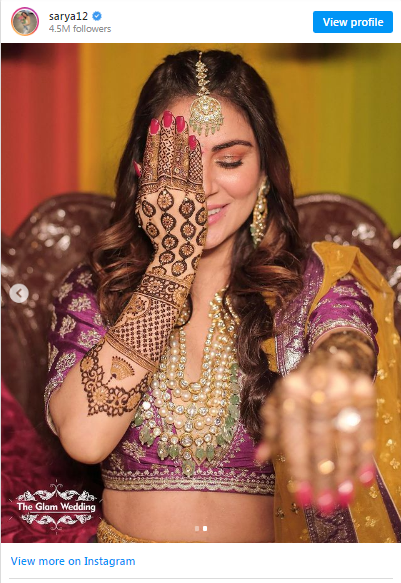 Shraddha herself has shared glimpses from her Sangeet and Mehendi. While sharing the pictures from her Mehendi function on Instagram, she wrote, “The Easiest YES I’ve ever said!” In the picture, Shraddha is wearing a gorgeous lehenga and jewelry, showing off her henna-decorated hands. The first picture showed her face in a blur focussing on the huge and beautiful engagement ring on her finger.