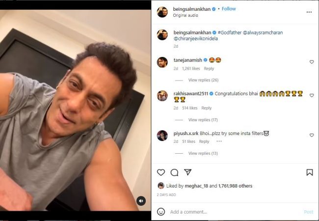 Let us tell you that before this, Salman Khan has also congratulated Chiranjeevi for the success of the film through his Instagram page. The actor wrote, “My dear Garu. I love you and hear that ‘Godfather’ is doing wonderfully. Congratulations to you.” Let us tell you that Nayanthara and Satyadev were also seen in important roles in this film directed by Mohan Raja.