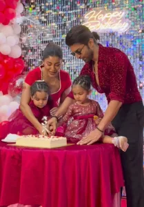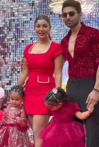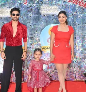 Debina, Gurmeet, and their adorable daughters Liana and Divyasha were a vision in red at the party. While Gurmeet Choudhary looked dapper in a red shimmery shirt paired with black trousers, Debina Bonnerjee stunned in a chic red short dress. Their daughters, Liana and the birthday girl Divisha, looked like little angels in shimmery frocks that perfectly complemented their parents’ look.