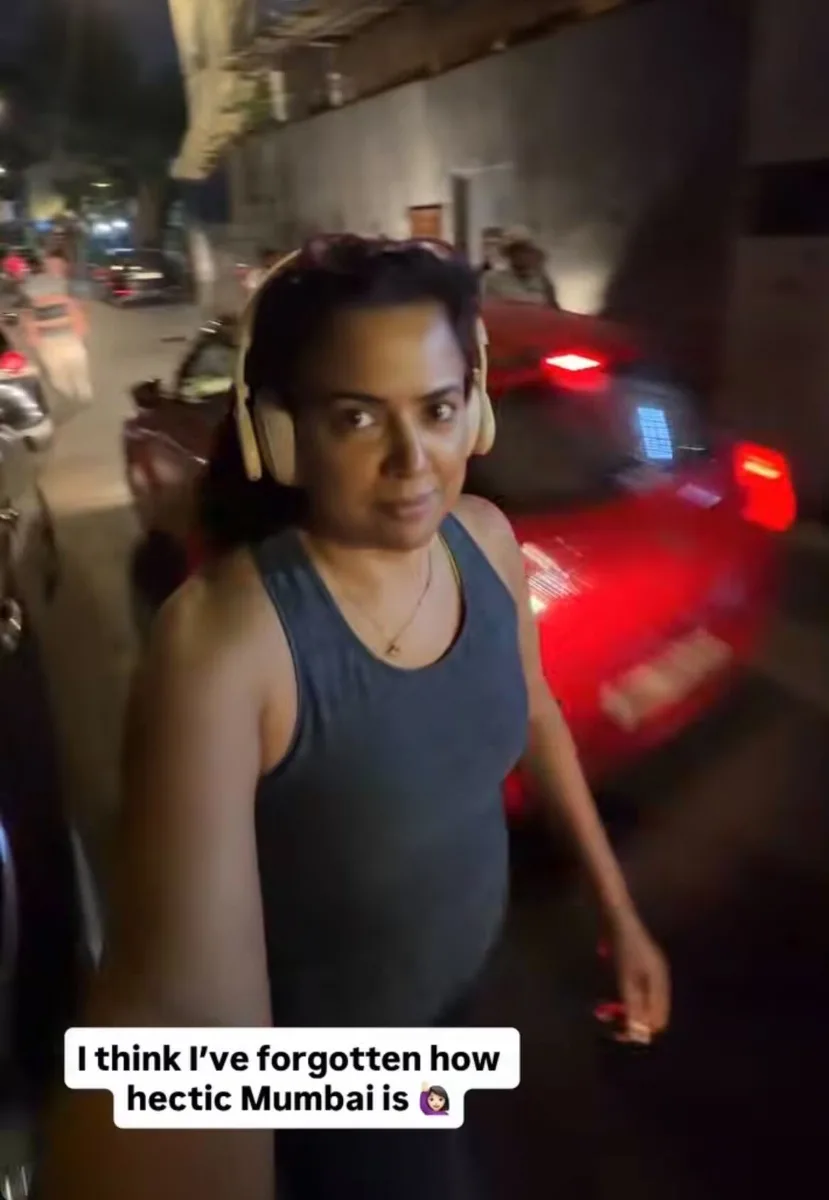 Actor Sameera Reddy offered a glimpse into Mumbai’s bustling streets as she stepped out for an evening walk, sharing her experience of navigating through heavy traffic and crowded lanes.