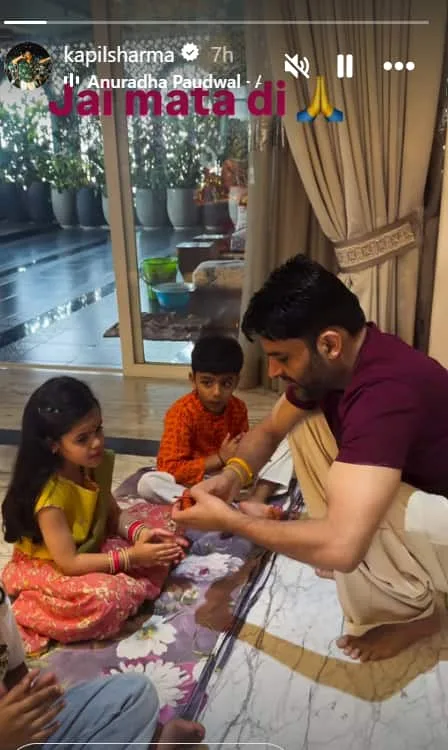 In the video he shared, Kapil can be seen tying Kalawa on the girls’ wrists, performing the pooja, and serving them a traditional meal. The atmosphere was filled with devotion as Aarti dedicated to Goddess Durga played in the background, while the girls happily clapped and participated in the prayers. After completing the rituals, Kapil sought blessings from the young girls, who are worshipped as forms of the divine feminine.