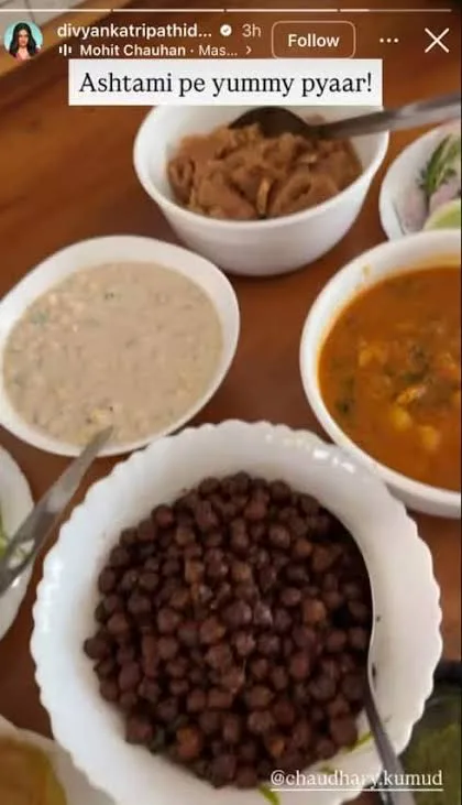 Divyanka Tripathi observed Durga Ashtami by offering Bhog and performing Kanya Pujan. Her festive spread included Halwa, Chana, Poori, along with Raita and Aloo ki Sabzi. Kanya Pujan holds deep spiritual importance during Navratri, as young girls are worshipped as embodiments of Goddess Durga. Devotees perform rituals, offer food, and seek blessings for prosperity and well-being.