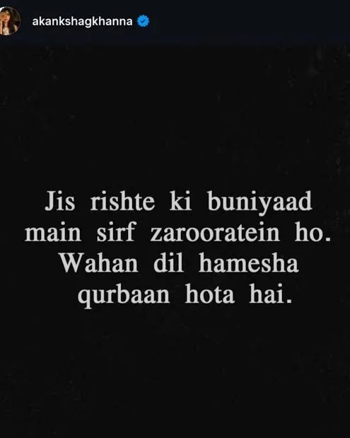However, a recent cryptic Instagram post by Akanksha Chamola has left fans surprised and sparked speculation about possible trouble in their married life. Akanksha took to Instagram to share a thought-provoking post that read, “In a relationship built solely on need, the heart is always sacrificed.” She captioned the post with another intriguing line, “When we thought we were ready, we weren’t.”
