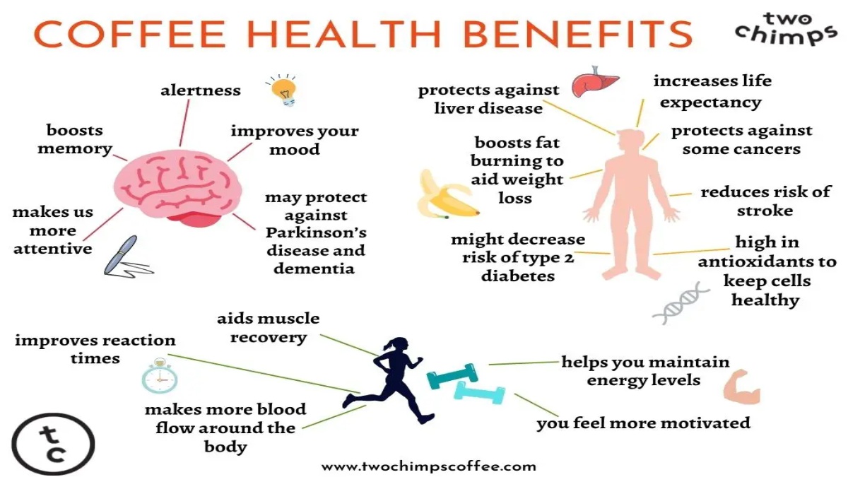 Coffee reduces neurodegenerative disorders such as Alzheimer’s and Parkinson’s disease. Also consuming coffee is linked with a lower risk of dementia.