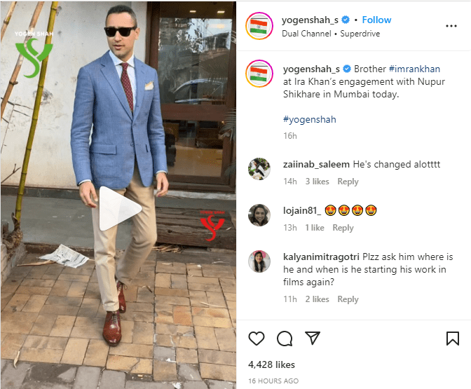 Khan is still remembered for his 2008 film, Jaane Tu..Ya Jaane Na, which made him earn a place in the hearts of millions. His genuine fanbase misses him on-screen. Imran looked dapper in a white shirt, paired with a blue blazer and beige trousers as he posed for shutterbugs in a goofy way. When he got spotted at Ira’s engagement, all his admirers went crazily nostalgic. They started demanding his comeback. “Oh My God! Imran… you look so handsome,” a user commented. Another wrote, “Miss you badly.” “Imran, please come back in films,” stated the third user.