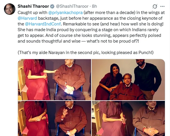 In his message, Tharoor called Priyanka “remarkable” and said she had “made India proud by conquering a stage on which Indians rarely get to appear.” He also complimented her poise, thoughtfulness, and overall presence at the event.