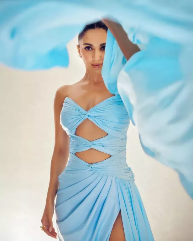 Kiara Advani made waves on the Pinkvilla Screen and Style Icon Awards 2024 red carpet recently. The diva, as usual, made sure to let everyone pause and take in her stunning appearance as she slipped into a seductive blue gown with cutouts. The flowing dress featured thigh-high and midriff slits in addition to sensual openings on the body. Kiara accessorised her ensemble with a gelled hair bun to provide an extra touch of glitz. She eschewed accessories in favour of a bold ring, glossy makeup, and high-heeled shoes to finish her ensemble.