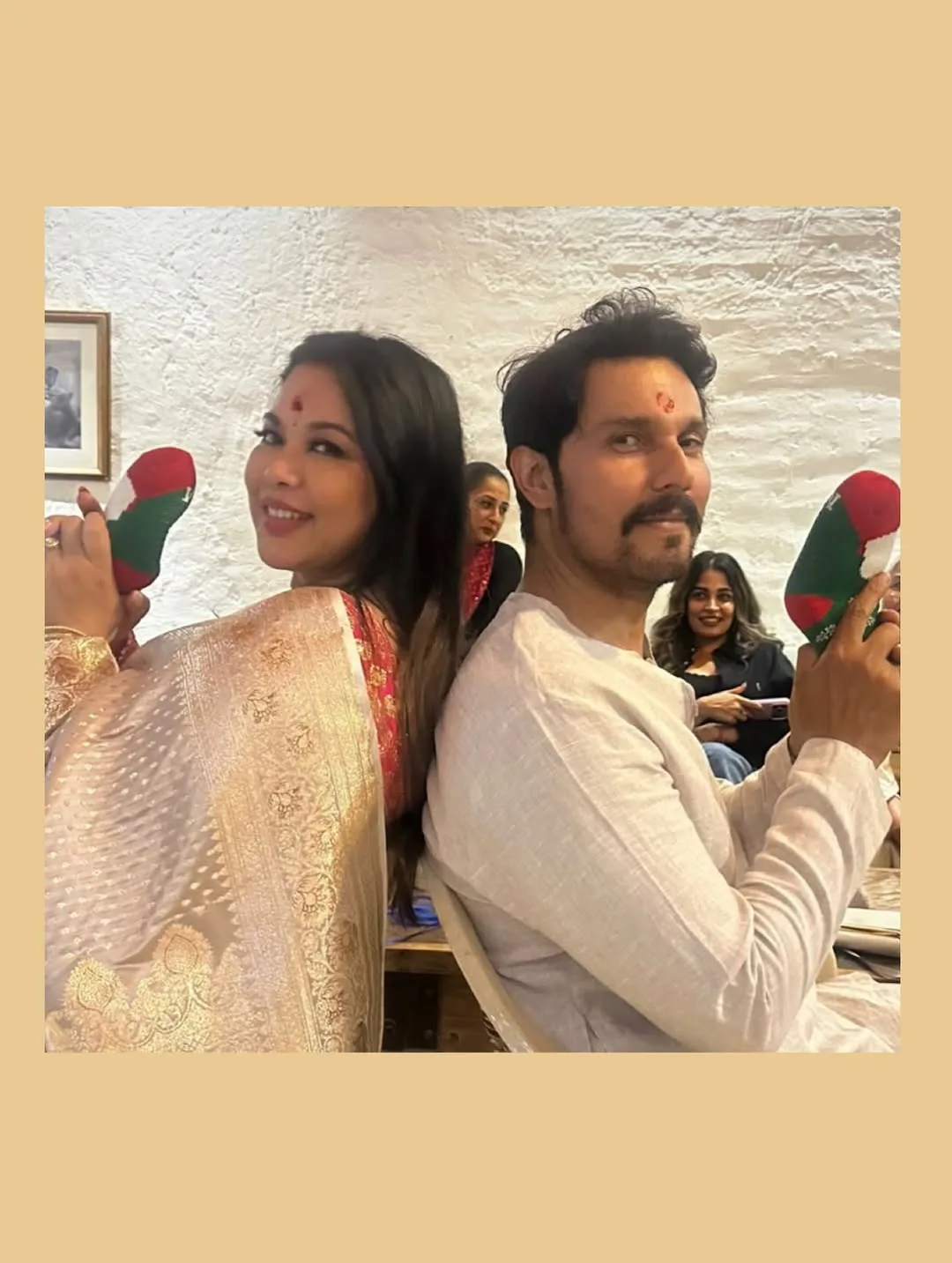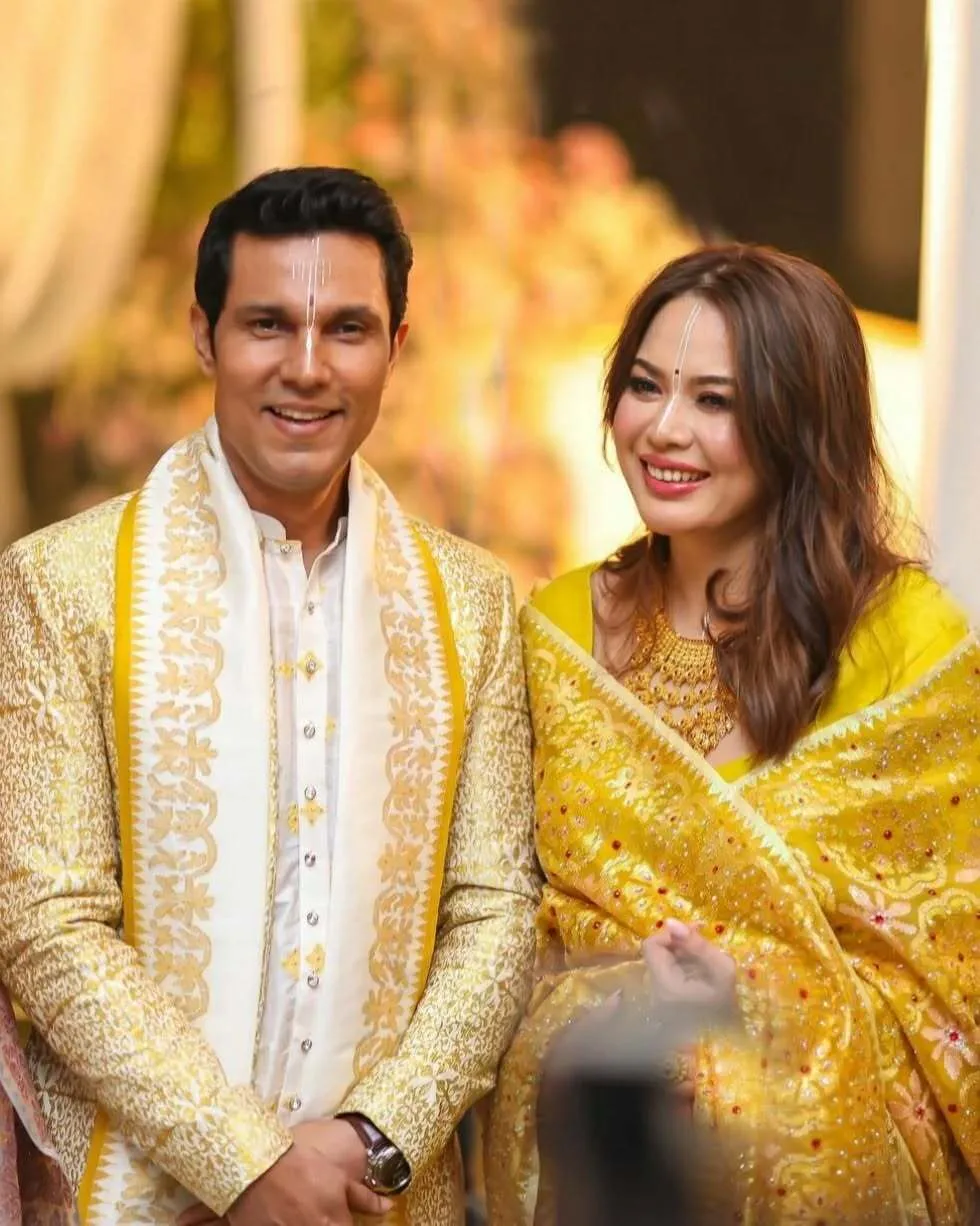 Standing by her side was husband Randeep Hooda, who opted for a simple yet graceful white kurta-pajama. His understated look complemented Lin’s festive attire, as the couple posed together, sharing smiles, quiet affection, and moments filled with anticipation for the new chapter ahead.