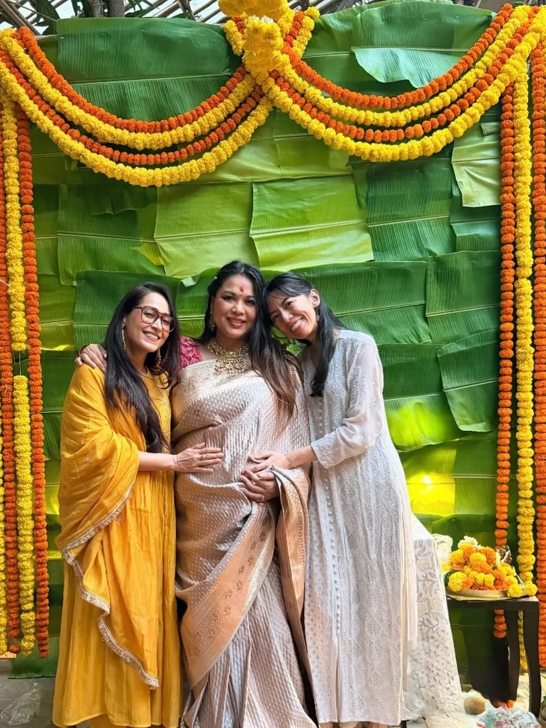 Mom-to-be Lin Laishram looked radiant and serene as she celebrated her traditional baby shower, embracing motherhood with grace and warmth. Dressed in a stunning golden-grey saree, Lin’s pregnancy glow truly stole the spotlight, making the occasion feel even more special.