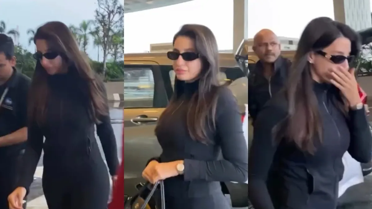 Nora Fatehi was visibly emotional during a recent public appearance, sparking concern among fans about a possible personal loss. The actor-dancer was spotted at the airport wiping away tears, while her security team shielded her from a man attempting to take a selfie. Dressed in black with sunglasses on, Nora appeared to be struggling to hold back her emotions as she walked past the cameras.