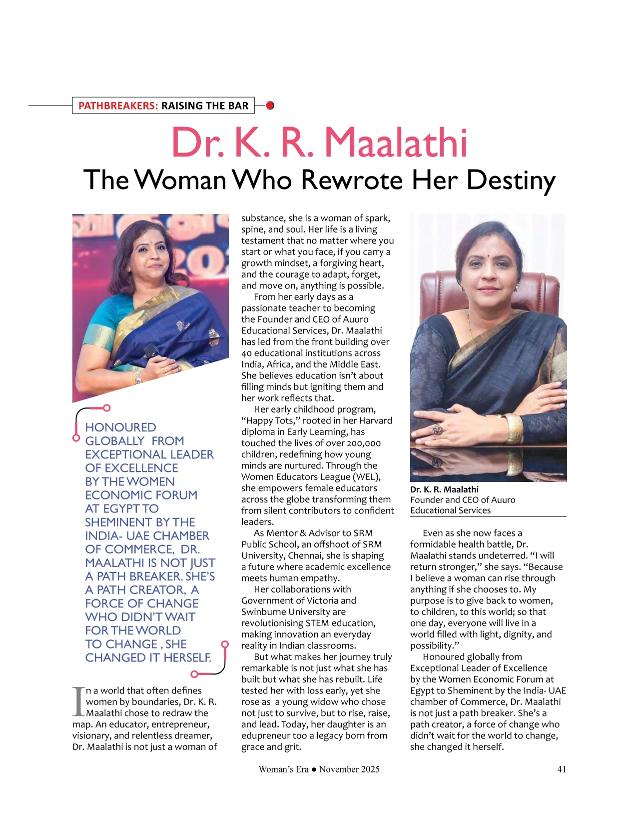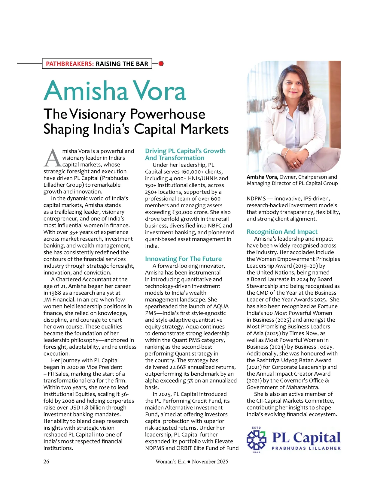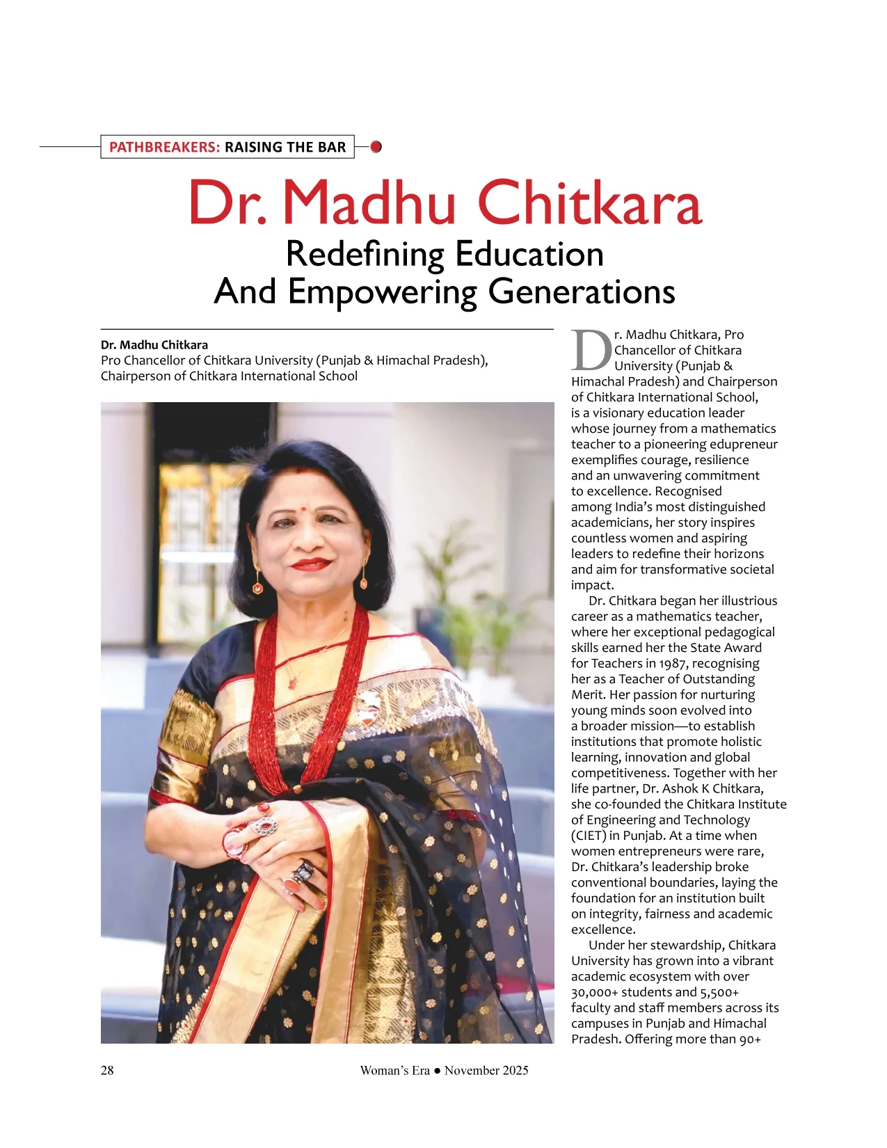 Pathbreakers: Raising The Bar Himshikha ShuklaPosted onNovember 8, 2025November 8, 2025inBiz & Tech, Business women, Women in profession WOMAN’S ERA celebrates women leaders who are driving change and inspiring generations. Our Feature “PATHBREAKERS” highlights their journeys—from ideas to challenges to milestones.