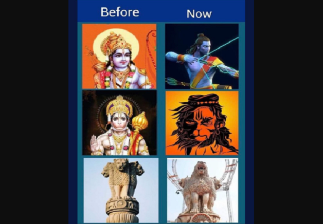 The actor has posted a collage on Twitter. In this collage, God is seen quite calm in the pictures in the column named ‘Pehle’. At the same time, their aggressive portrayal is visible in the pictures in the second column. Along with the pictures of Lord Rama and Lord Hanuman in this collage, the picture of before and now Ashoka Pillar is also there.