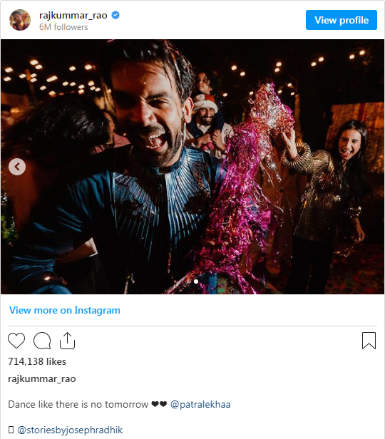 Actor Rajkummar Rao seems to be in no mood to come out of his wedding frenzy. Recently, he posted pictures with his wife Patralekhaa on Instagram. In the photos, the two are seen dancing together.