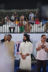Invited as a special guest, Ram Charan shared his gratitude with the crowd and reflected on his connection with Lord Ram. Speaking in Hindi, he said, “My full name is Ram Charan Teja Konidela. It means the one who is at the feet of Lord Ram, Hanuman. I live where Ram is. Ram resides in all of you, and you called me here, so I came.” The actor also drew a parallel between his real life and his role in “RRR,” where he portrayed Alluri Sitaramaraju, a fierce freedom fighter from British-era India.