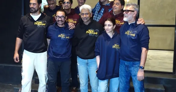 In a fun and nostalgic touch, several cast members appeared in coordinated outfits. Aamir Khan arrived in a custom hoodie emblazoned with the film’s title, while many others followed a similar dress code, adding to the reunion’s celebratory vibe.