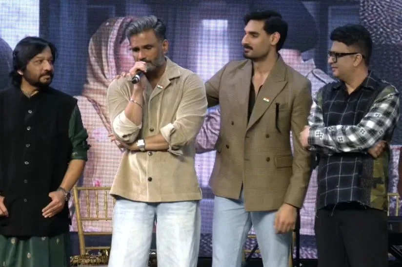 While addressing the audience at the event, Suniel Shetty became visibly emotional, with tears streaming down his face as he spoke about the challenges Ahan faced after his debut film ‘Tadap’ failed at the box office. He strongly dismissed the common belief that star kids have an easy path in the film industry. With a choked voice, Suniel said, “This is his second film, and getting such a big film… it’s a very responsible film.”