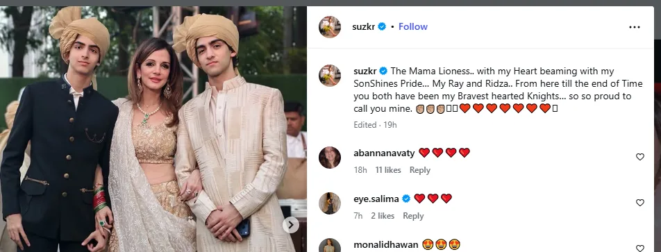 The snapshot, with Sussanne between her sons dressed elegantly for the occasion, highlighted the close bond they share. Family and fans alike have responded warmly to her touching tribute.