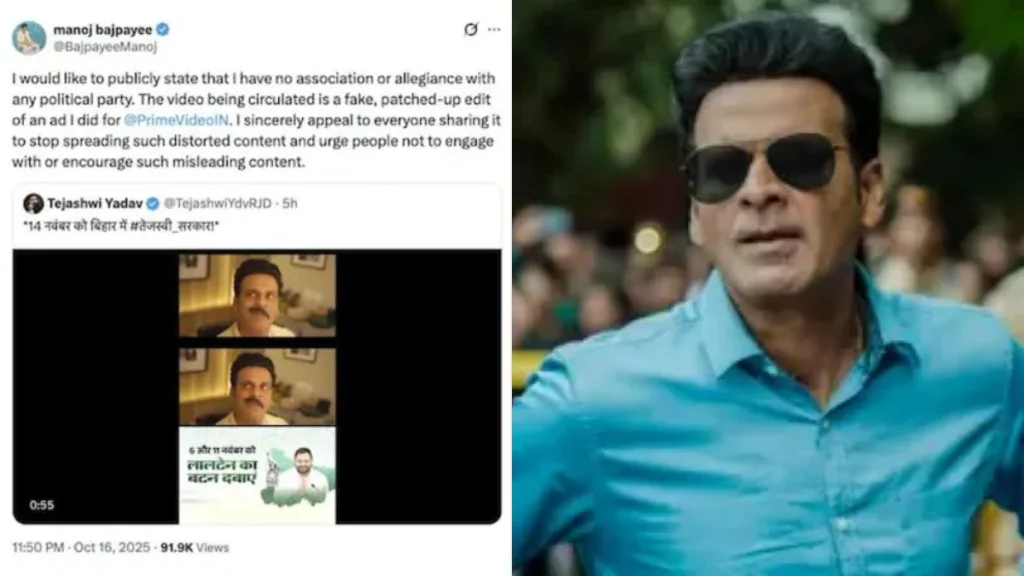 Posted onOctober 17, 2025inCelebrity Talk, Controversy Manoj Bajpayee Slams ‘Fake, Patched-Up’ Video Ahead Of Bihar Election, Denies Allegiance With Political Parties