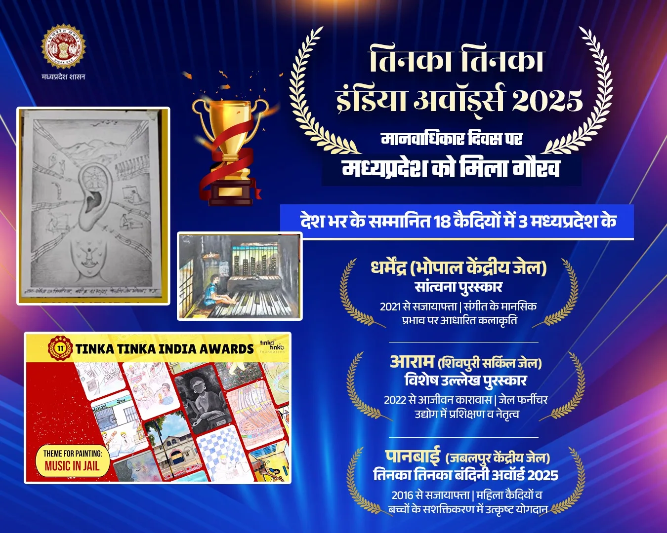 - 18 inmates chosen for Tinka Tinka India Awards, 2025 across three categories: Painting, Special Mention, and Bandini. Out of the 18 inmates, 13 are convicts and 5 are under trials