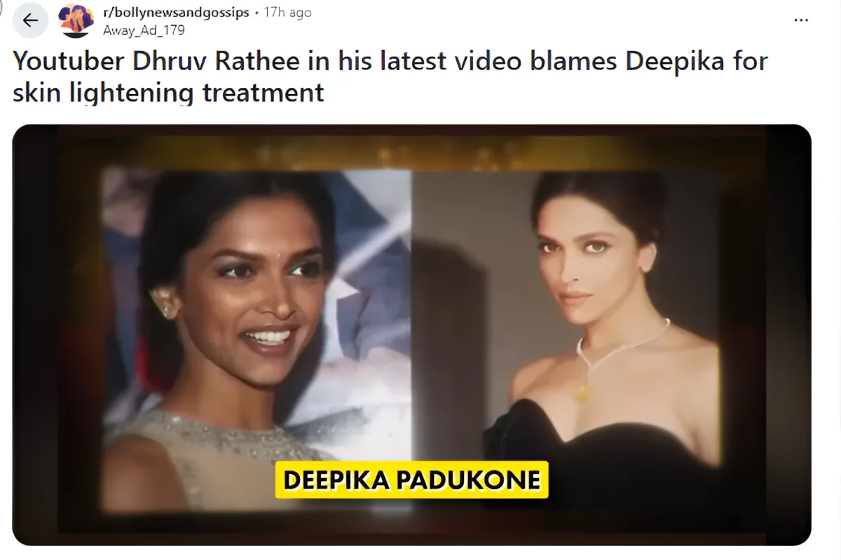 Social media is buzzing after political commentator Dhruv Rathee sparked controversy by alleging that Bollywood star Deepika Padukone has undergone skin-lightening treatments.