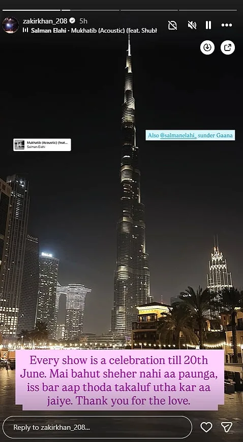 Soon after the on-stage announcement, Zakir Khan hinted that his decision was final through an Instagram story on Tuesday, January 20. After landing in Dubai, he shared a heartfelt message with fans, urging them to attend his upcoming shows. He wrote, “Every show until June 20th is a celebration. This time I won’t be able to come to many cities, so please make a little extra effort and come to see the show. Thank you for your love.”